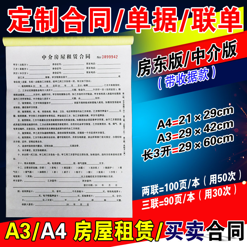 房产中介用品三联二联出租房合同本联单协议书房屋租赁定制定做热门设计联盟服务商