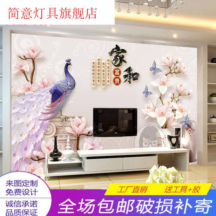 中式壁画客厅贴画贴纸电视背景墙壁纸卧室墙布5d影视墙装饰8d墙纸热门设计联盟服务商