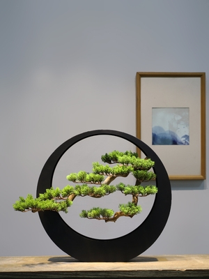 新中式轻奢艺术家居装饰品禅意摆件迎客松铁艺盆景客厅玄关会所热门设计联盟服务商